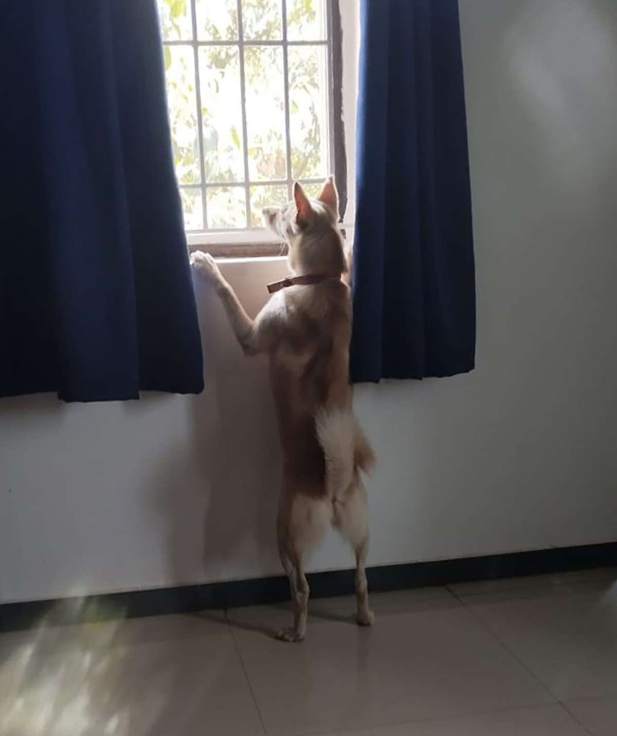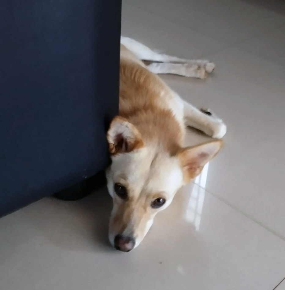 The humans named me Bambi because of my beautiful eyes. Later my second name was added, and they named me Bambi Naal Mani as I have the habit of waking my human at 4.00 am! Every morning, I wake up my human either by licking his face or by scratching his back. I draw his upper limb towards me, and make him scratch my upper chest. It feels so good I doze and sometimes even sleep next to him.