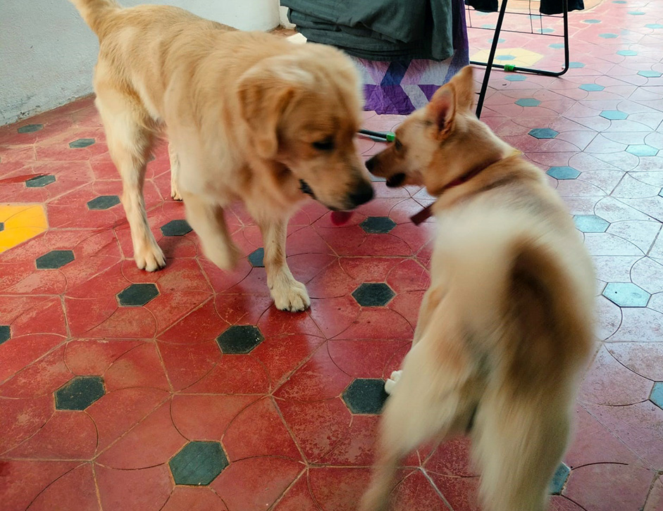 Scout is a Golden Retriever whose human allows us to play in the park. It’s fun running at great speeds. He is huge, but I push him down when we wrestle. The humans encourage us a lot. Only problem is we have to stick to the park. Only then will the humans be comfortable and not anxious as both of us have this inherited habit of running behind cycles, scooters, bikes, cars etc. We feel proud of ourselves because our barking and running behind them drives them away, protecting our humans.