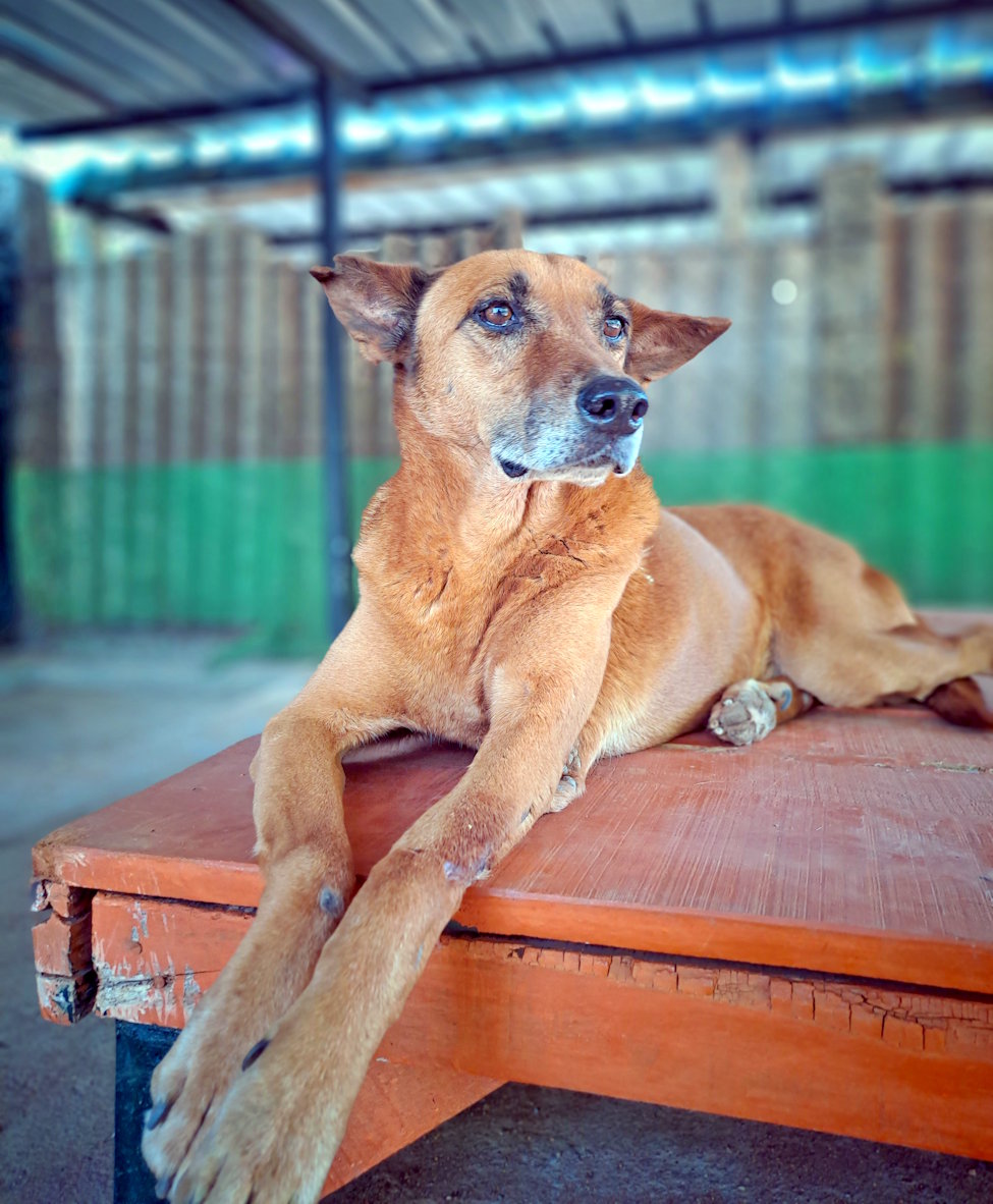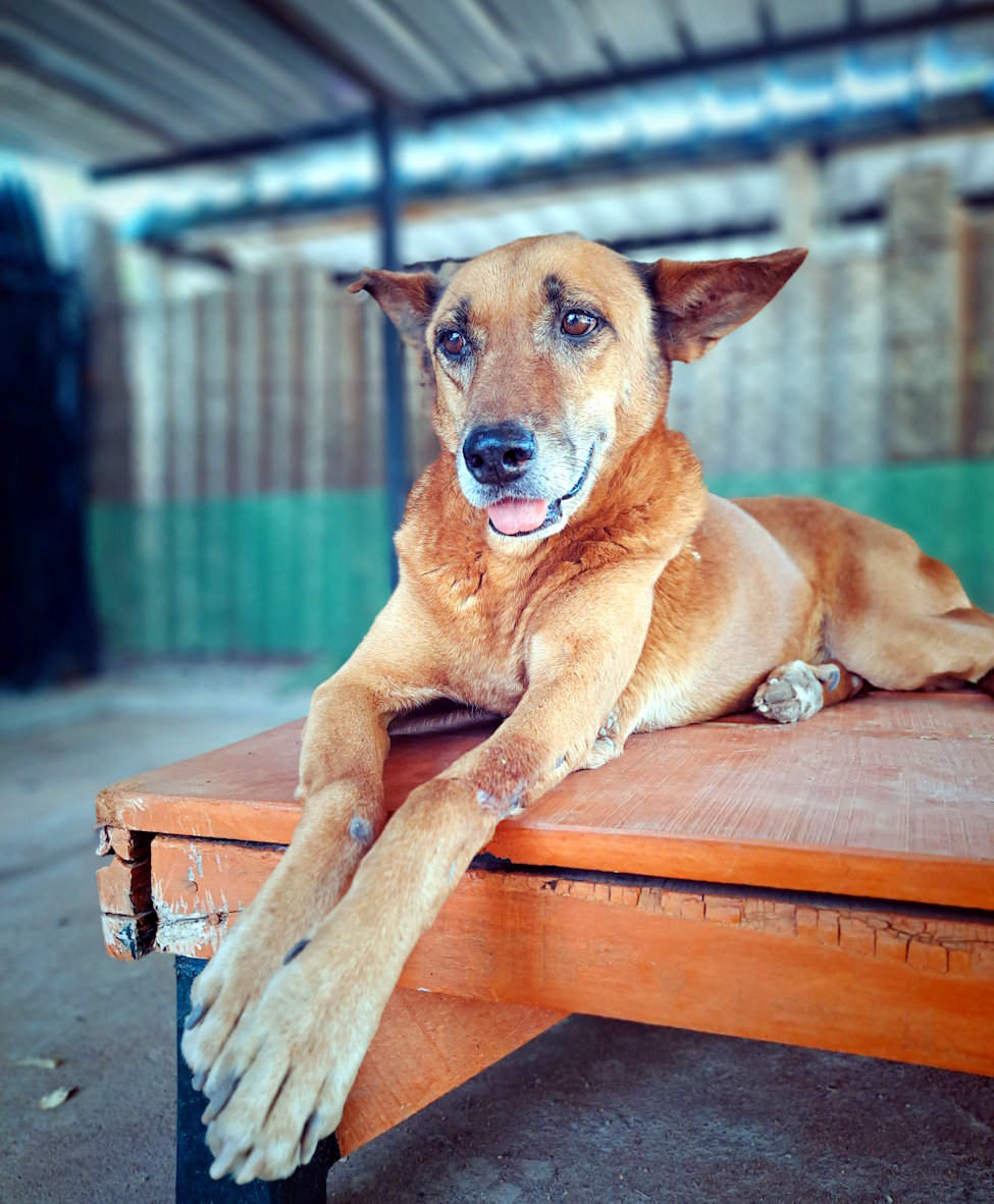 Orthopaedic surgery followed, and slowly, with time, love, and patience, he began to heal. However, with no guardian to claim him and no safe place to return him to, we decided Hopes would never be abandoned again and would live out his days in quiet dignity at our sanctuary. With his favourite companion, Sam, another gentle spirit, he is at peace with the world, and the two can often be found resting in the shade, watching the world go by.
