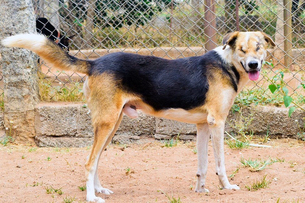 R escued with a horrible maggot wound in his eye, Dhoni had already begun to lose his vision when an infection in his remaining eye, caused it to be completely destroyed. To add to his misery, poor Dhoni was also diagnosed with a Transmissible Venereal Tumor (TVT). Honestly, we're at a loss to explain how he survived following this gruesome incident, but thank goodness he did!