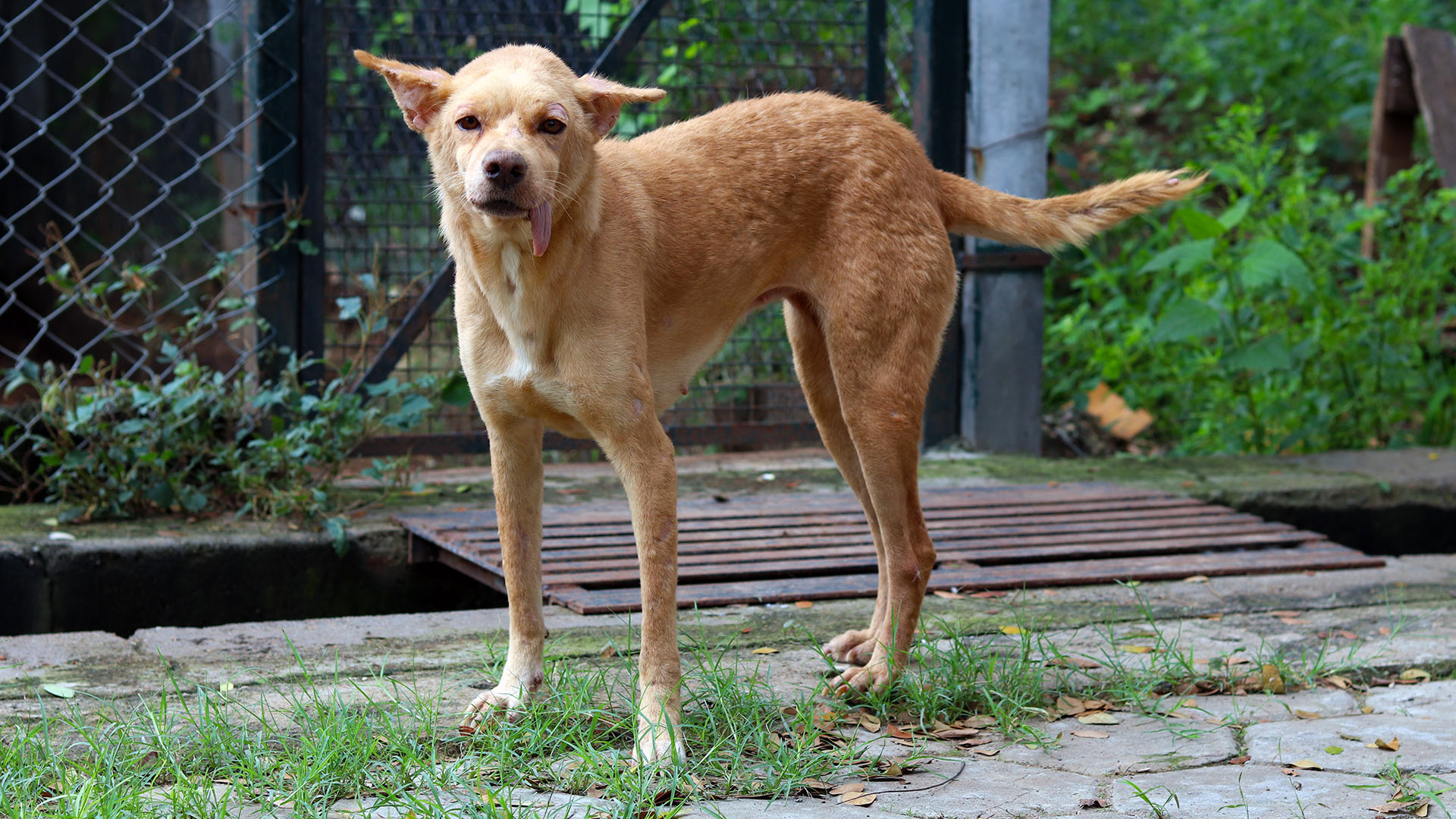 A Canine Distemper survivor, Lara has been left with neurological symptoms that sometimes cause her tongue to protrude from her mouth, but don’t worry, it doesn’t get in the way of her appetite! Understandably, Lara is cautious of new humans and will try her best to figure out your intentions while barking loudly and keeping her distance. However, once she knows that you’re not going to harm her – as may well have been the case in the past – she will tolerate you, and may even allow you to pet her…if you’re very lucky!