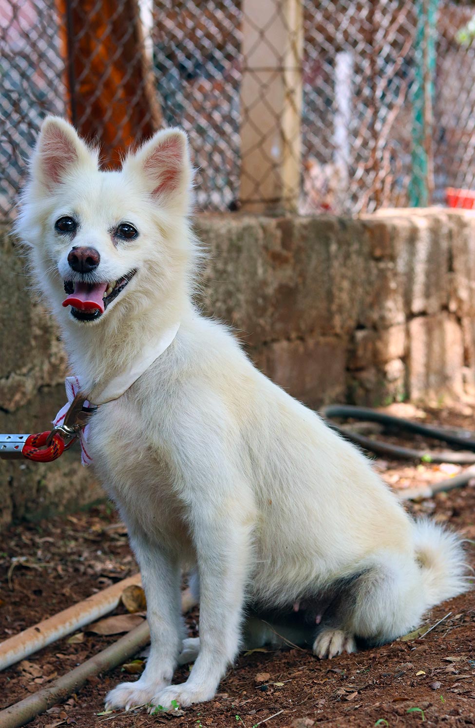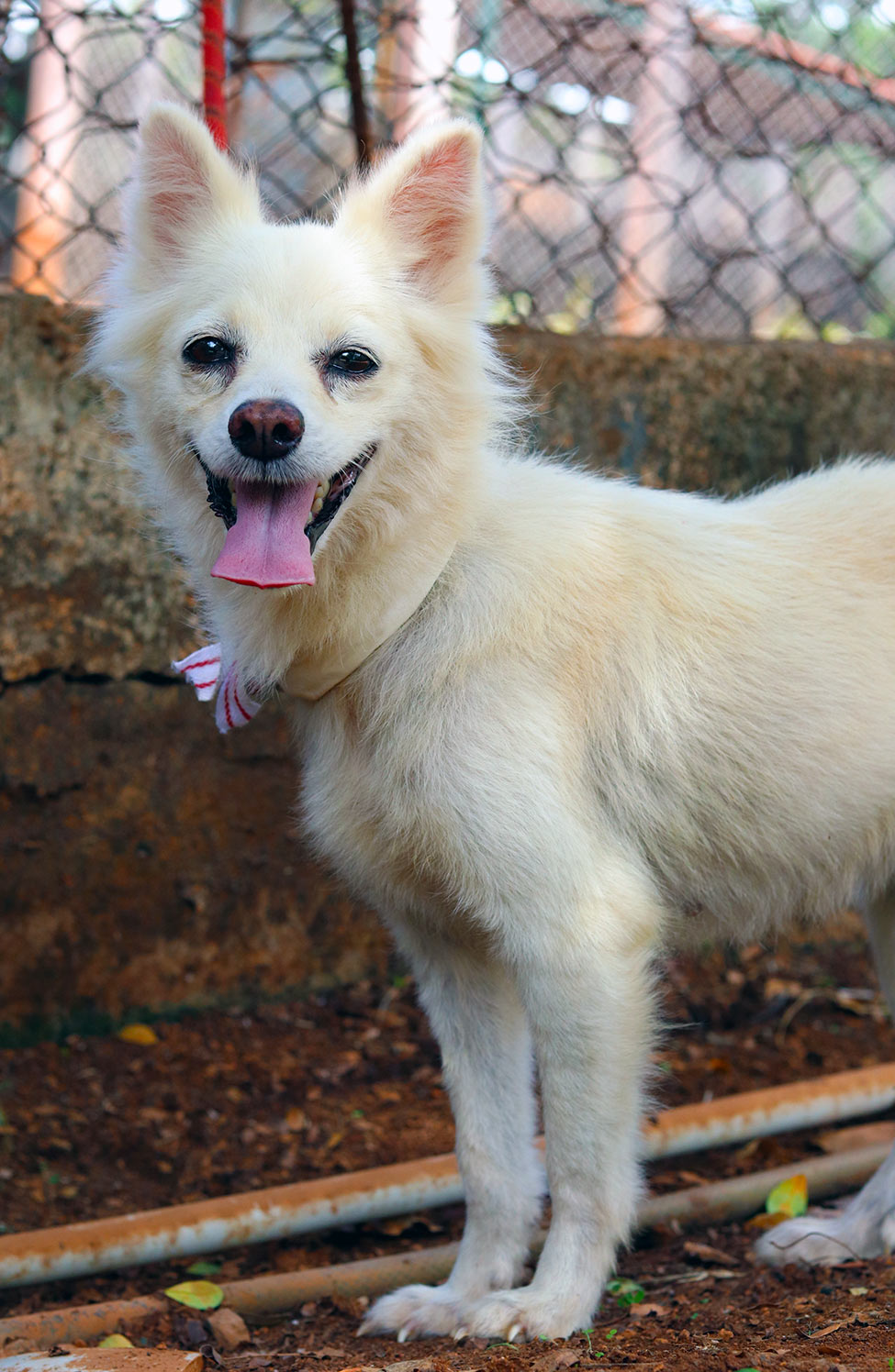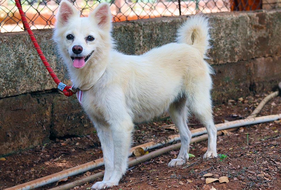 A s is the case with all our permanent resident breed dogs, Pomeranian Mimy was abandoned in classic cruel style, and was found wandering the dangerous streets, scared, hungry and alone. While initially fearful of us all, Mimy settled in and learned to accept us as her carers, and finally enjoyed daily walks and cuddles with our team.