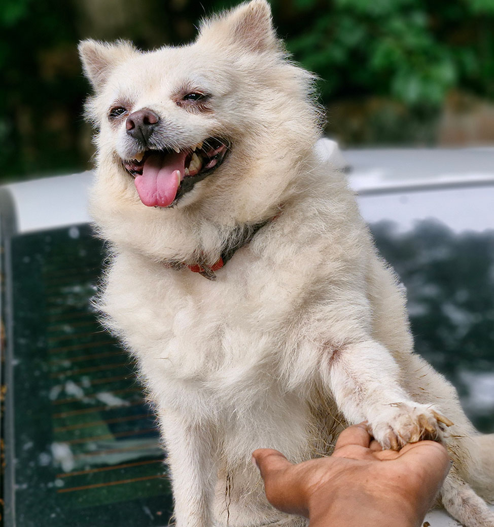 P onmani had probably been abandoned, and whether the bulge around the stomach she exhibited was a reason for this, or a consequence of it, we may never know. But what we did know is that she needed immediate veterinary attention. Following a detailed examination, we saw that her internal organs were pushing out through a tear in her muscles, something that must have been excruciatingly painful. Patching her up and taking her in, we found that while it took a little while to gain her trust (and understandably so), once we did, she was the most loving and loyal furry friend you could hope for.